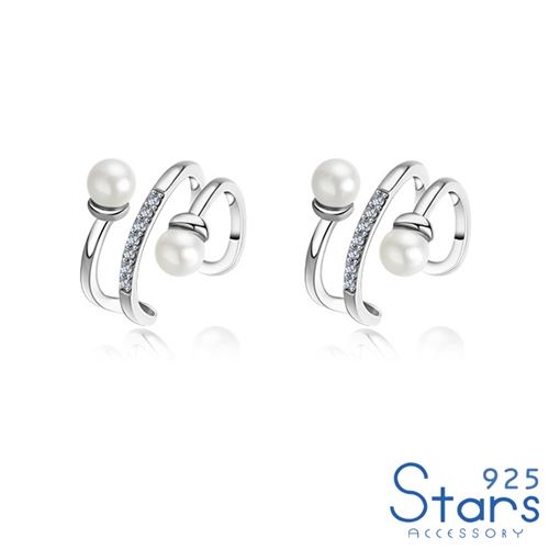 純銀925微鑲美鑽珍珠縷空線條時尚耳骨夾*925 STARS* |
