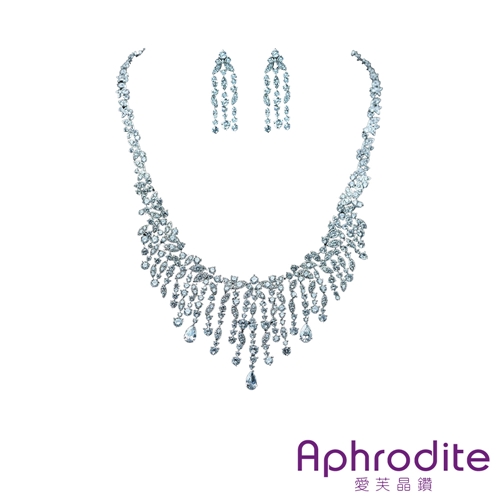 奢華滿鑽華麗花葉鋯石造型耳環項鍊2件套組*愛芙晶鑽* |