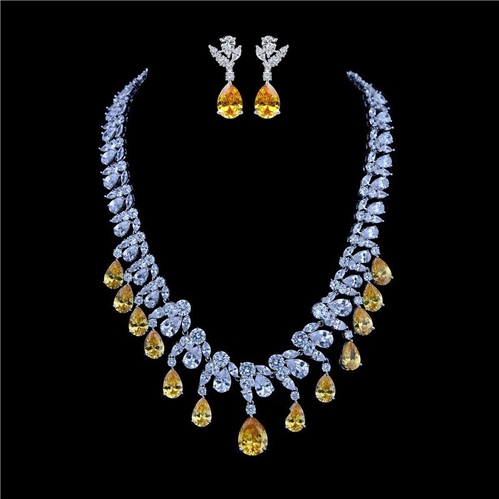 華麗鋯石幾何水滴水晶流蘇項鍊耳環2件套組*愛芙晶鑽* |