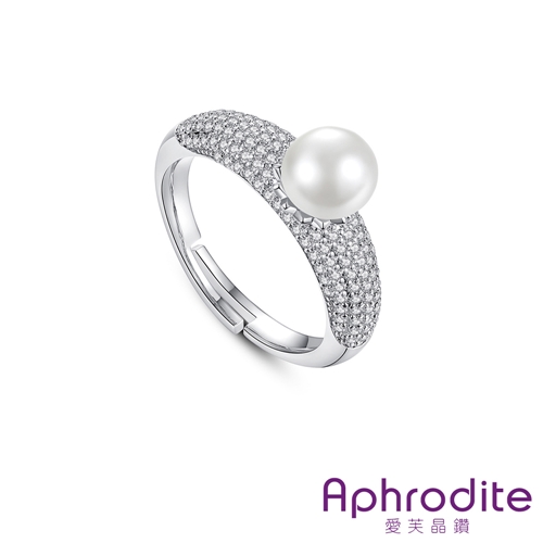 閃耀滿鑽鑲嵌圓潤珍珠造型戒指 開口戒*愛芙晶鑽* |