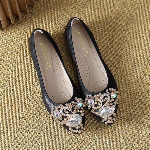 小尖頭優雅閃鑽天鵝造型軟底平底鞋 蛋捲鞋 黑*PINKBABY* |