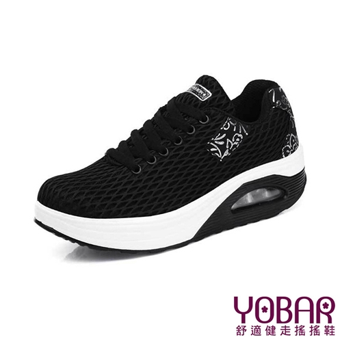 立體網面燙銀拼接繫帶休閒美腿搖搖運動鞋 黑*YOBAR* |