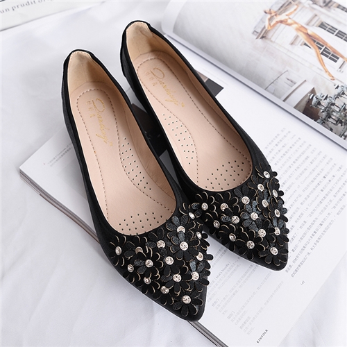小尖頭甜美碎花造型軟底平底鞋 黑*PINKBABY* |
