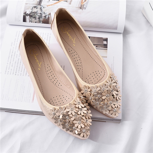 小尖頭甜美碎花造型軟底平底鞋 金*PINKBABY* |
