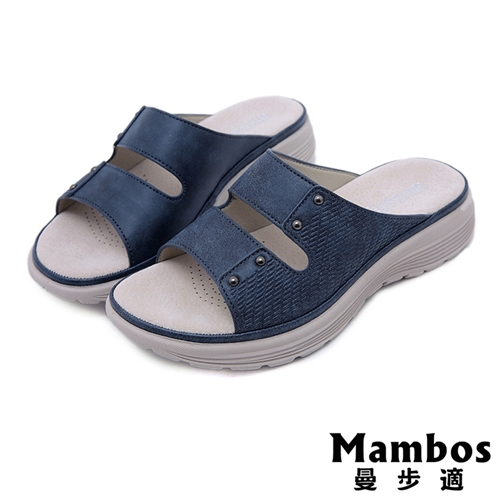 復古時尚鉚釘舒適百搭厚底拖鞋 藍*曼步適* |