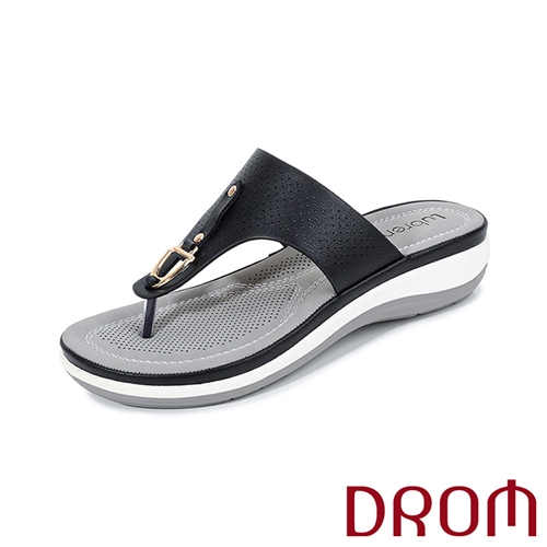 極簡百搭金屬釦T字夾腳厚底拖鞋 3色任選*DROM* |
