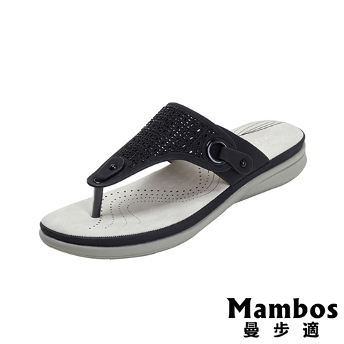 細緻刻花縷空燙鑽經典人字厚底夾腳拖鞋 黑*曼步適* |