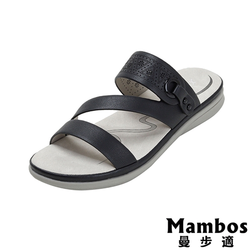 舒適刻花Z字休閒厚底拖鞋 黑*曼步適* |
