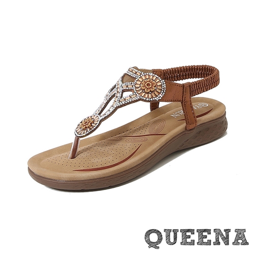 波西米亞民族風美鑽花朵串珠平底涼鞋 3色任選*QUEENA* |