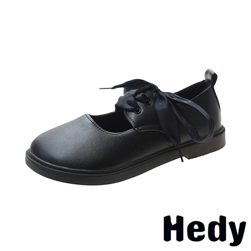 甜美學院風小圓頭綁帶造型休閒娃娃鞋 黑*HEDY* |