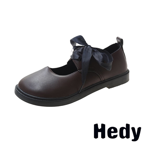 甜美學院風小圓頭綁帶造型休閒娃娃鞋 棕*HEDY* |