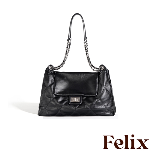 真皮頭層牛皮經典菱格大容量時尚鍊條方包*felix* |