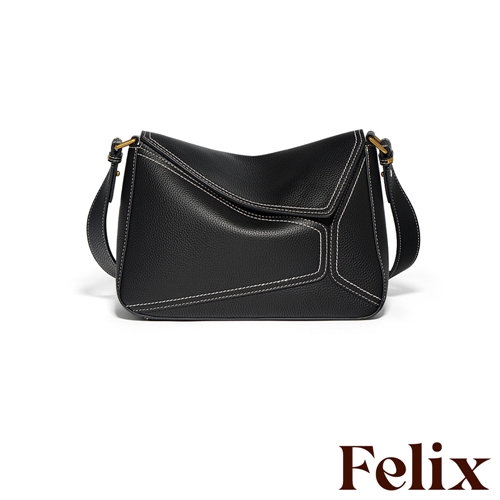 真皮頭層牛皮幾何車線拼接通勤單肩包 5色任選*felix* |