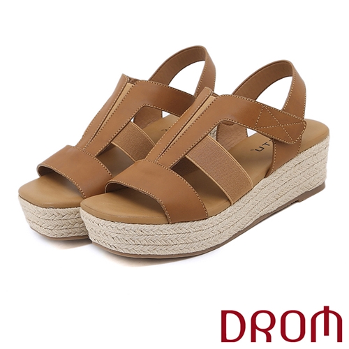 極簡歐美時尚縷空草編坡跟厚底造型涼鞋 棕*DROM* |