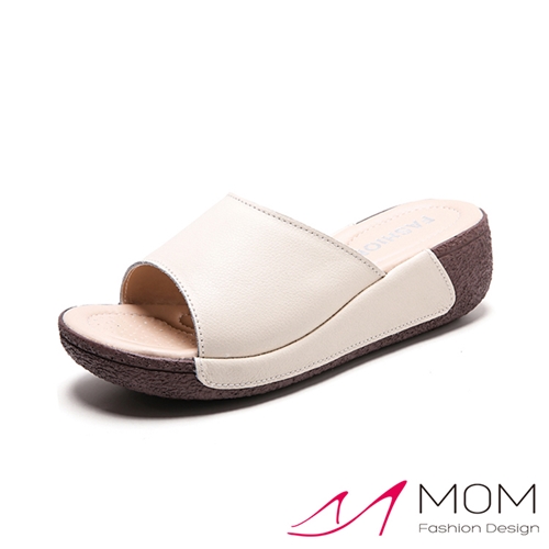 真皮舒適經典鬆糕厚底拖鞋 米*MOM* |