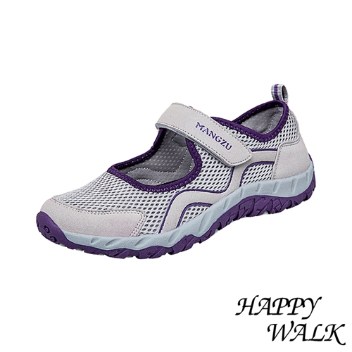 透氣網面拼接魔鬼粘舒適健步休閒鞋 灰*HAPPY WALK* |