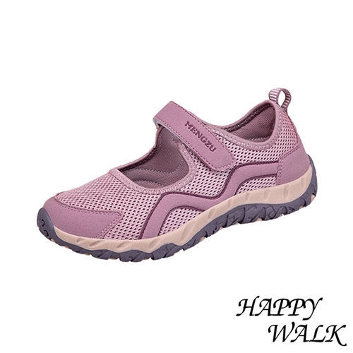 透氣網面拼接魔鬼粘舒適健步休閒鞋 粉*HAPPY WALK* |