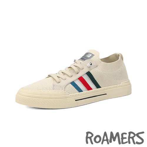 透氣彈力飛織繫帶造型板鞋 休閒鞋 米*ROAMERS* |