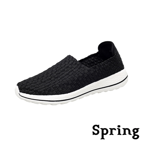 純色經典編織飛織帶厚底休閒鞋 黑*SPRING* |