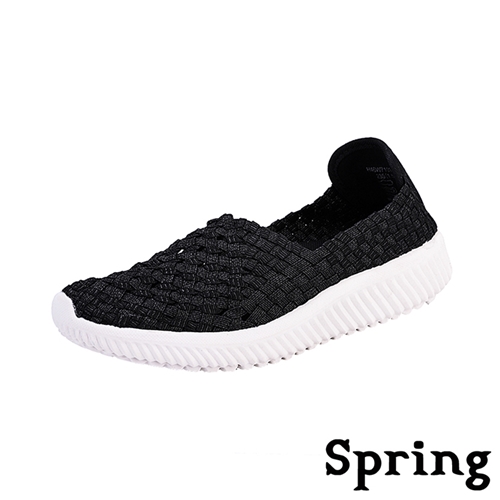 透氣縷空飛織帶編織舒適輕量休閒鞋 黑*SPRING* |