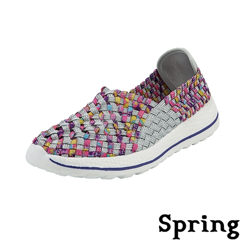 舒適彈力飛織編織帶情侶款厚底休閒鞋 銀*SPRING* |