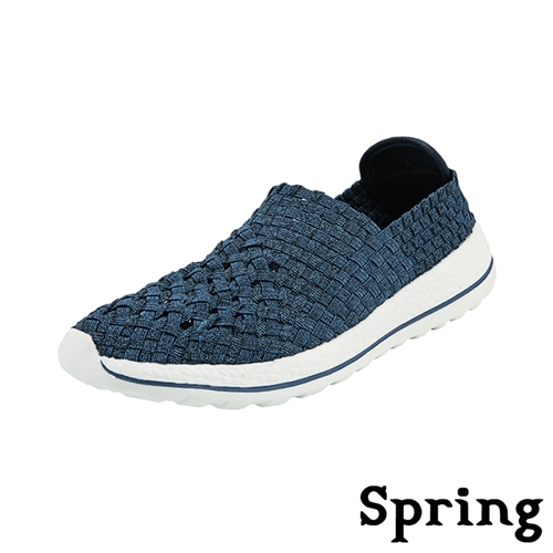 舒適彈力飛織編織帶情侶款厚底休閒鞋 藍*SPRING* |