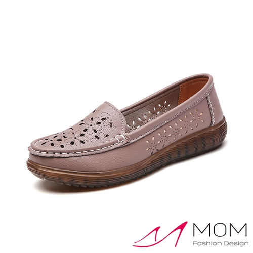 真皮透氣縷空小花造型樂福鞋 豆沙*MOM* |