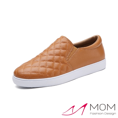 真皮菱格車線百搭休閒樂福鞋 棕*MOM* |