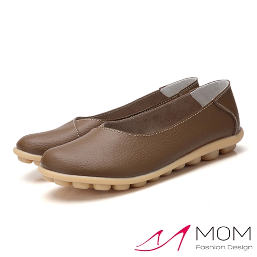 真皮純色素面交叉折疊舒適豆豆休閒鞋 卡其*MOM* |