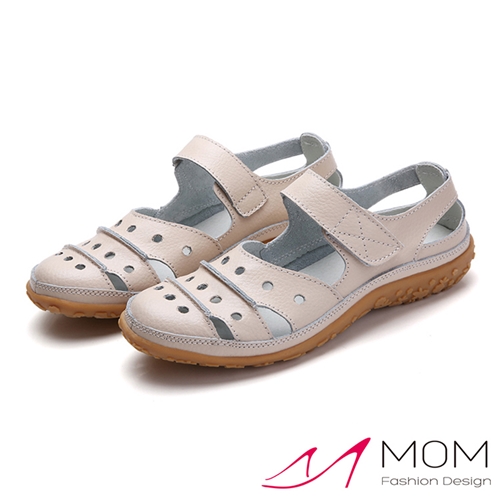 真皮幾何圓孔洞洞拼接舒適涼鞋 米*MOM* |