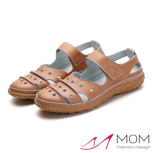 真皮幾何圓孔洞洞拼接舒適涼鞋 棕*MOM* |