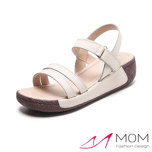 真皮極簡線條造型魔鬼粘厚底涼鞋 米*MOM* |