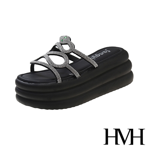 閃耀美鑽縷空幾何線條厚底拖鞋 黑*HMH* |