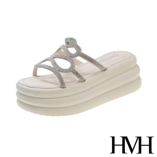 閃耀美鑽縷空幾何線條厚底拖鞋 米*HMH* |
