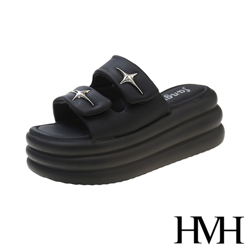 閃耀十字星釦飾魔鬼粘造型厚底拖鞋 黑*HMH* |