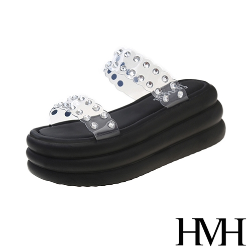 閃耀美鑽透明一字帶造型厚底拖鞋 黑*HMH* |