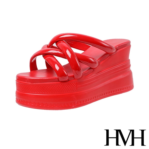 立體交叉編織線條造型坡跟厚底拖鞋 紅*HMH* |