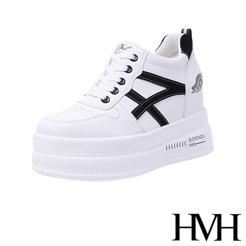 百搭運動風簡約線條造型內增高厚底休閒鞋 白黑*HMH* |