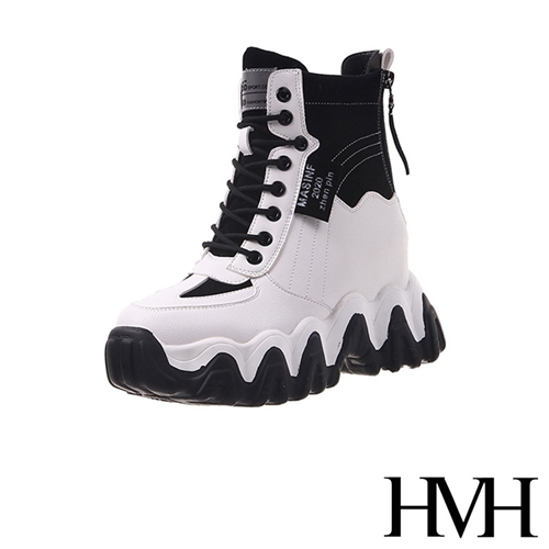潮流復古百搭撞色繫帶高筒厚底內增高休閒鞋 黑*HMH* |