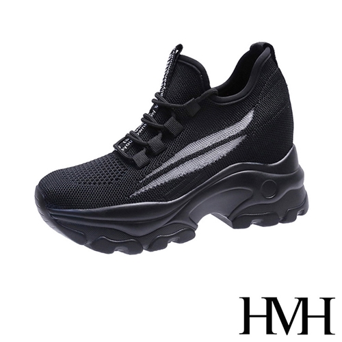 透氣流線飛織舒適百搭厚底內增高休閒鞋 黑*HMH* |