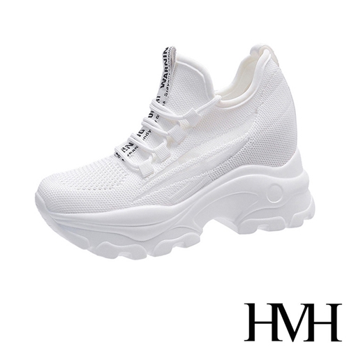 透氣流線飛織舒適百搭厚底內增高休閒鞋 白*HMH* |
