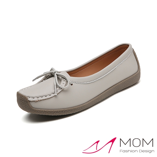 真皮蝴蝶結綁帶造型軟底蝸牛鞋 休閒鞋 灰*MOM* |