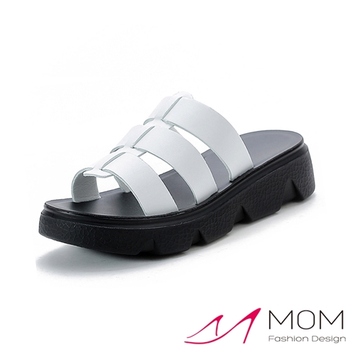 真皮魚骨縷空復古厚底羅馬拖鞋 白*MOM* |