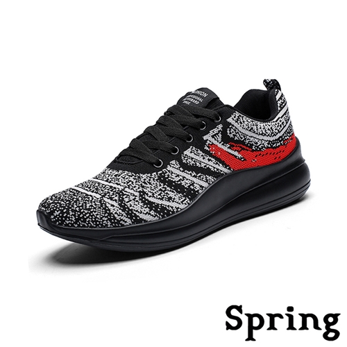 潮流時尚水沫飛織撞色百搭運動鞋 黑白*SPRING* |