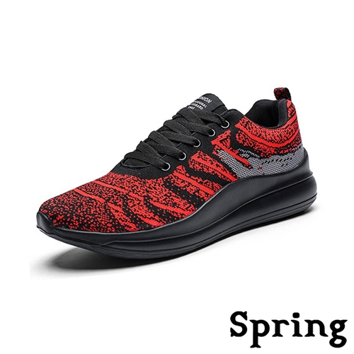 潮流時尚水沫飛織撞色百搭運動鞋 紅*SPRING* |