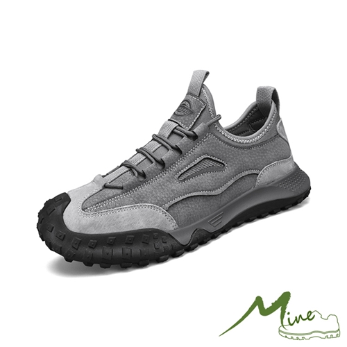真皮磨砂牛皮復古設計繫帶休閒登山鞋 灰*MINE* |