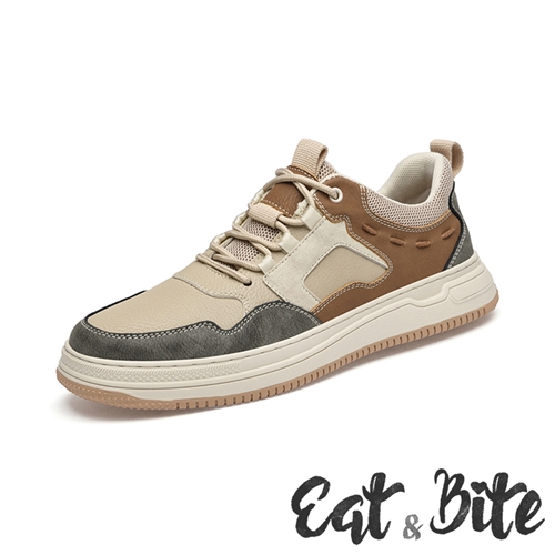 個性復古撞色異材質拼接厚底休閒鞋 板鞋 棕*E&B* |
