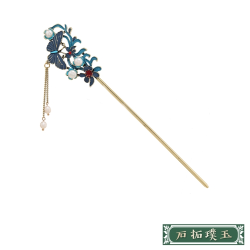 古典中國風淡水珍珠燒藍步搖流蘇髮簪 髮夾 2款任選*石拓璞玉* |