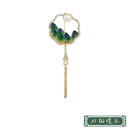 復古中國風淡水珍珠流蘇團扇造型胸針 5款任選*石拓璞玉* |