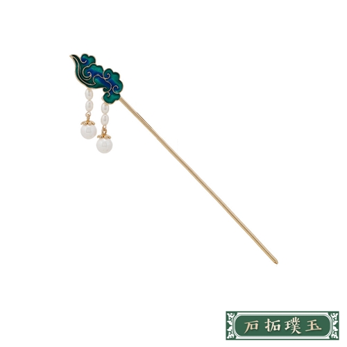 復古步搖珍珠吊墜流雲造型盤髮髮簪 2色任選*石拓璞玉* |